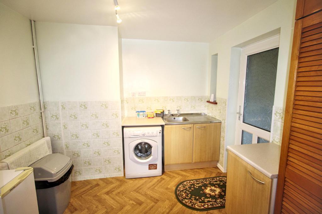 UTILITY ROOM - 9' 1'' x 9' 3'' (2.79m x 2.82m) UPVC door to side with frosted aspect leading to garage. Base units with space for washing machine. Tiled splashback. Stainless steel sink and drainer.