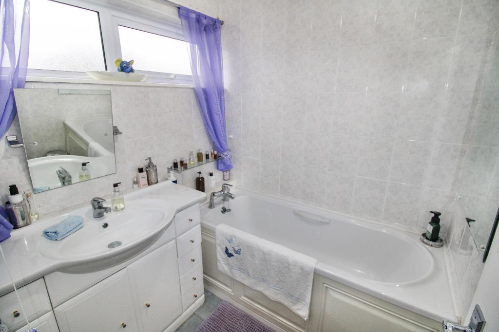 Bathroom - UPVC frosted aspect to front. Fully tiled. Vanity sink unit. Bath.