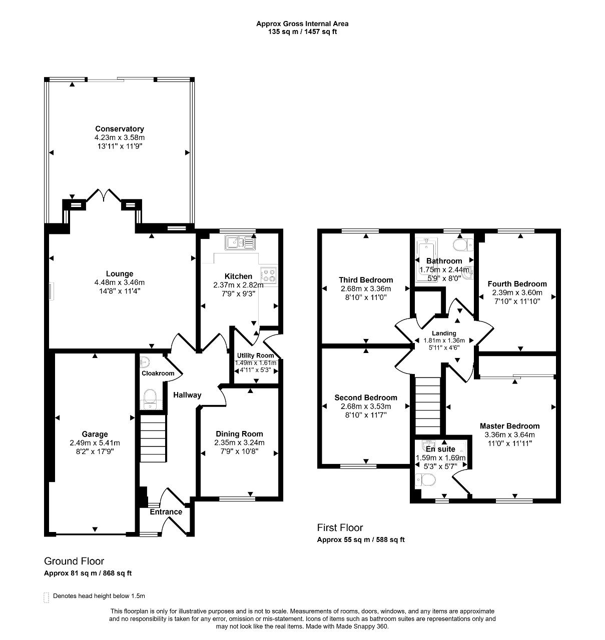 Upstairs, there are four well-proportioned double bedrooms. The master bedroom benefits from built-in wardrobes and a private en suite, while the remaining bedrooms are served by a family bathroom.