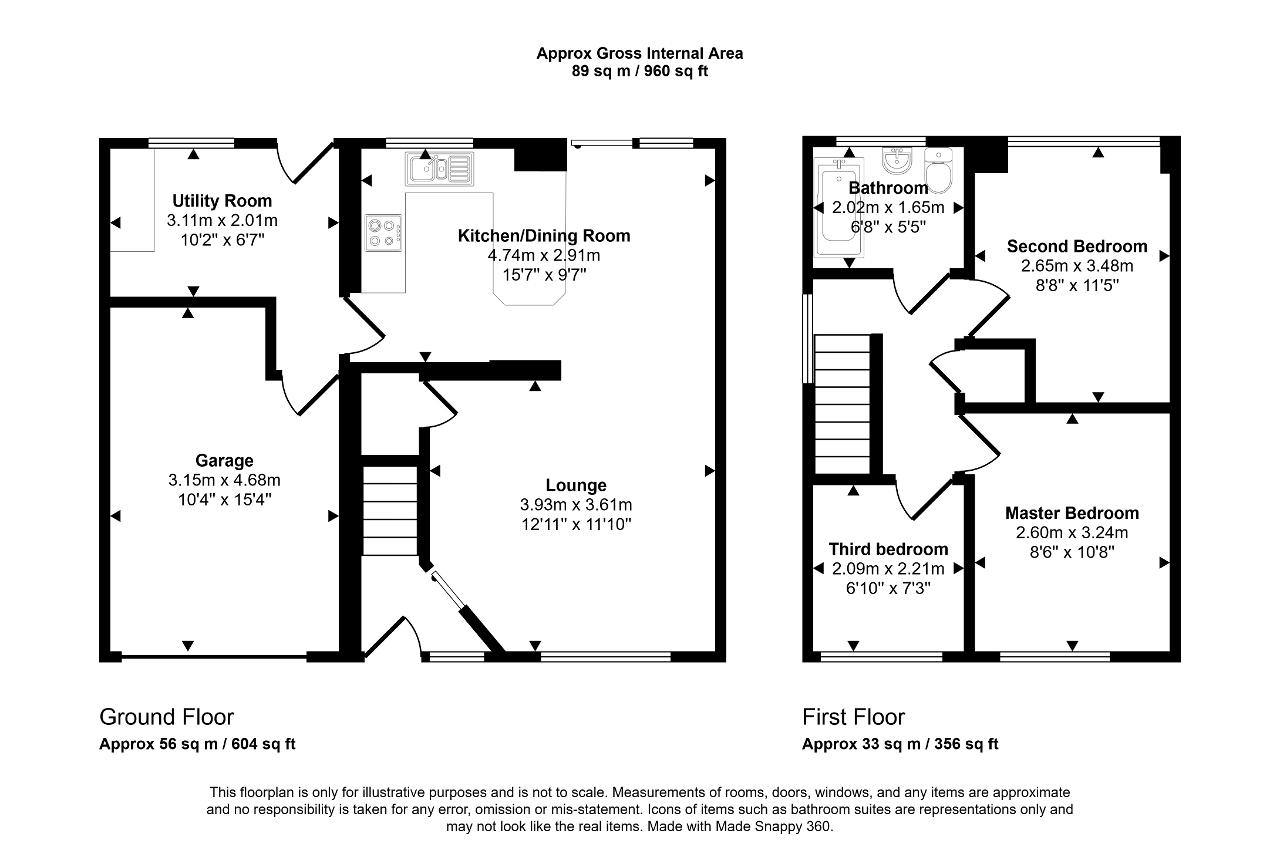 Upstairs, there are two double bedrooms and a single bedroom, served by a modern white family bathroom.
