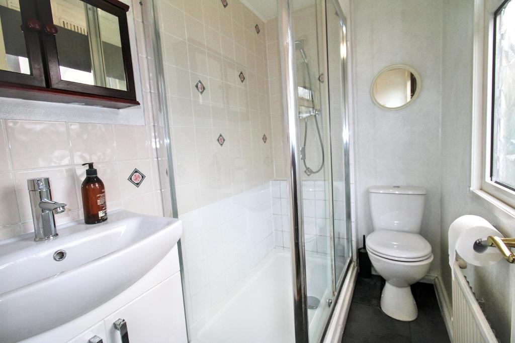Shower Room - UPVC frosted aspect to side. Shower cubicle, vanity sink unit and WC. Rad. Partly tiled.