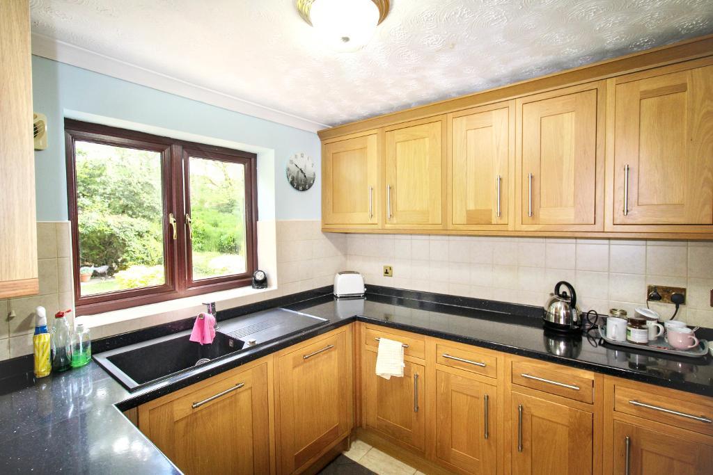 Kitchen - UPVC aspect to rear. Wall and base units with integrated oven dishwasher and fridge freezer. Composite sink and drainer. Tiled splashback surround.