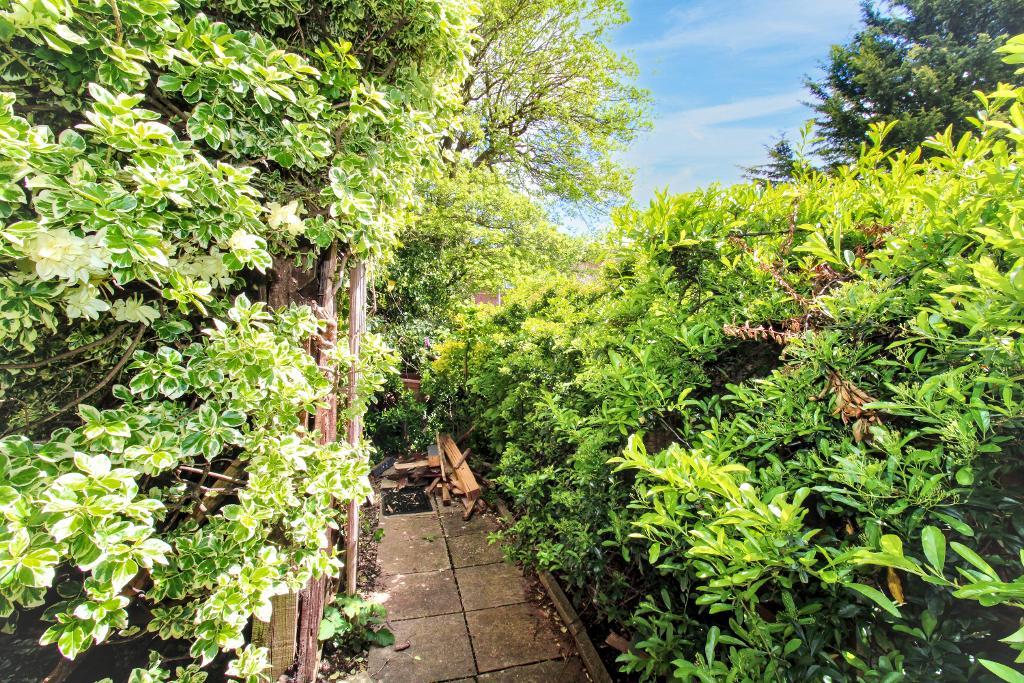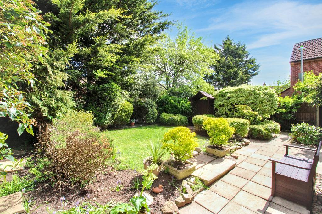 Rear Garden - Mainly laid to lawn surrounded by mature shrubbery and trees. Paved seating area. Access to extension room. Enclosed by fence panels.