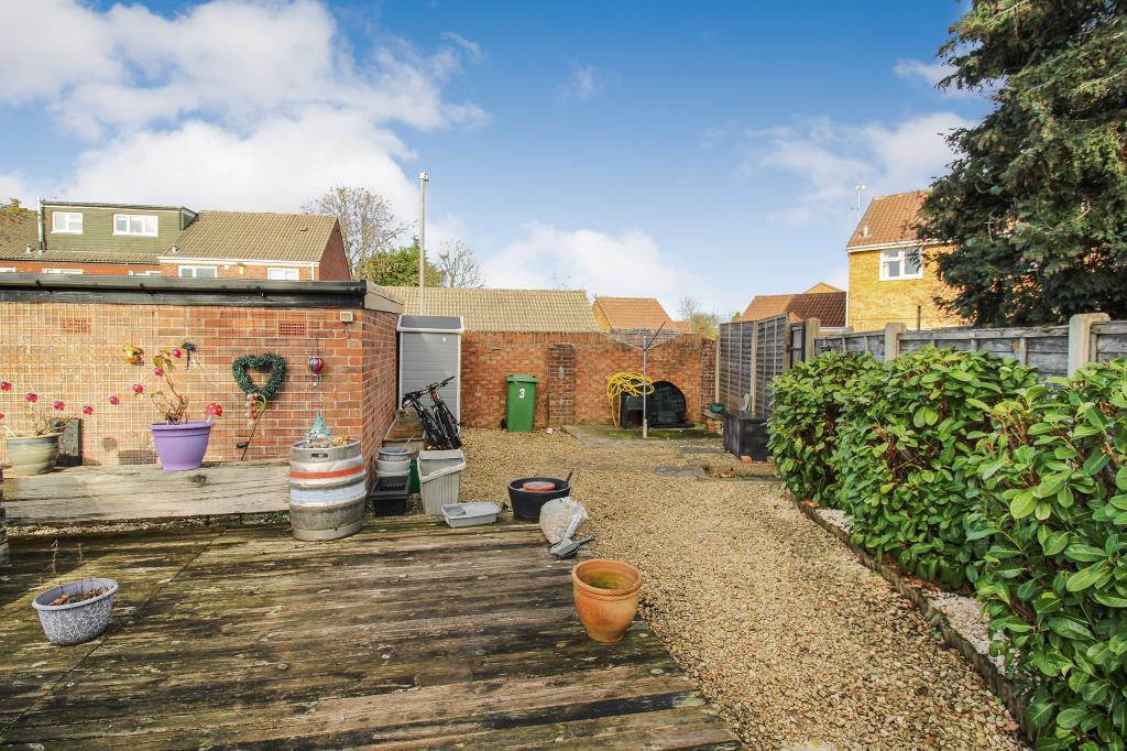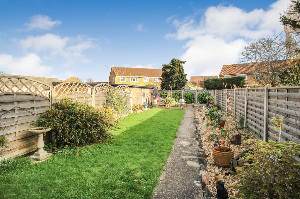Rear Garden - Laid to lawn with paved seating area. Path to rear. Pebbled decorative area. Enclosed by fence panels. Access to rear. Access to garage.