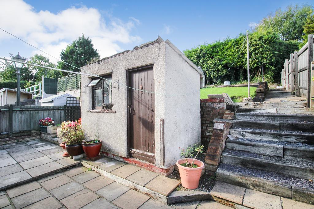 Rear Garden - Split level garden with paved seating area and laid to lawn surrounded by mature shrubbery. Enclosed by fence panels. Access to garage.