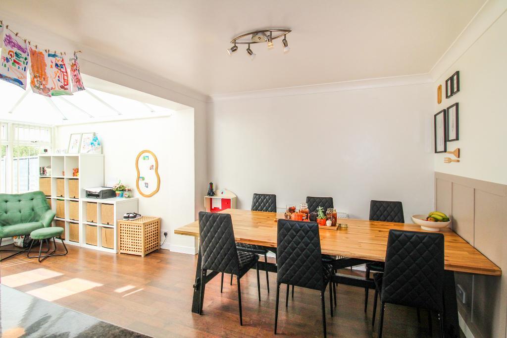 The ground floor begins with an inviting hallway that includes handy storage beneath the stairs. At the front of the house, the lounge is bright and welcoming, providing an ideal space to relax. To the rear, a stylish kitchen opens into a dining area and flows seamlessly into a generous conservatory. This light-filled extension offers versatile use, whether for entertaining, dining or as a family space, and enjoys views over the garden.