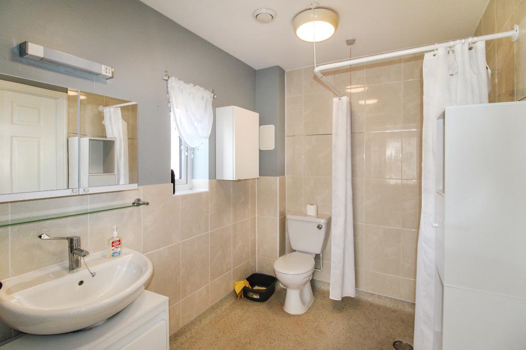 Wet Room - UPVC frosted aspect to side. WC, pedestal sink and shower. Partly tiled. Heated towel rad.