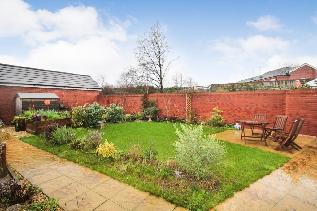 Rear Garden - Laid to lawn, path leading to gate (access to parking space) shed, vegetable patch.