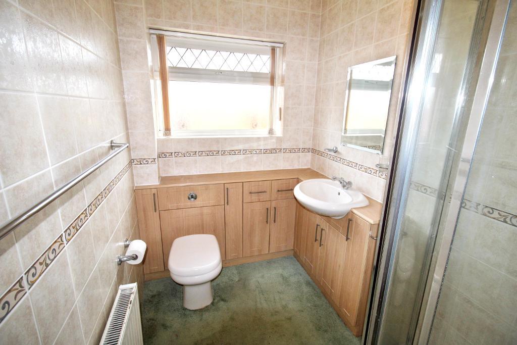 Shower Room - UPVC frosted aspect to rear. Partly tiled. WC, vanity sink unit and shower cubicle. Rad.